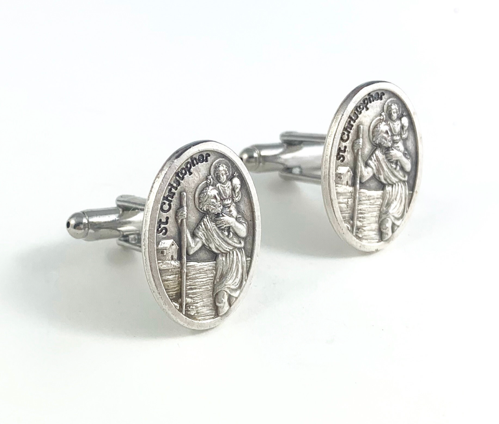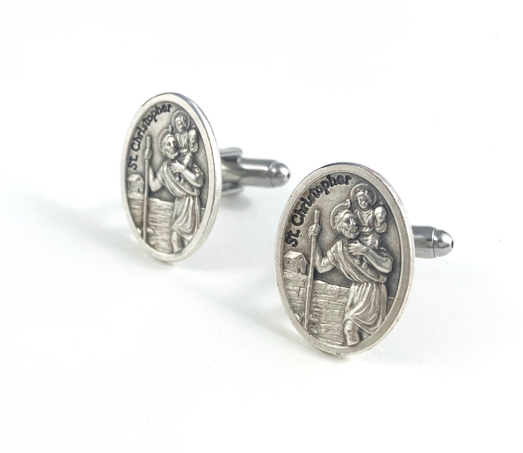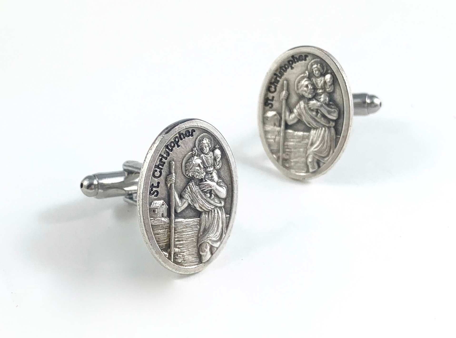 These cufflinks are made from two St. Christopher medals with beautiful images on them.