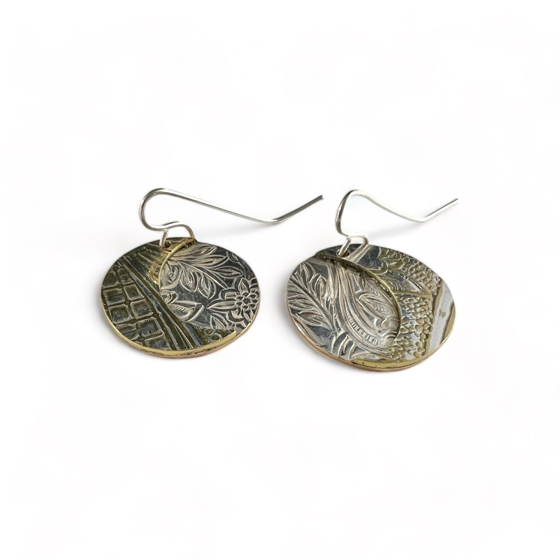 Silver and Brass Moon Drop Earrings