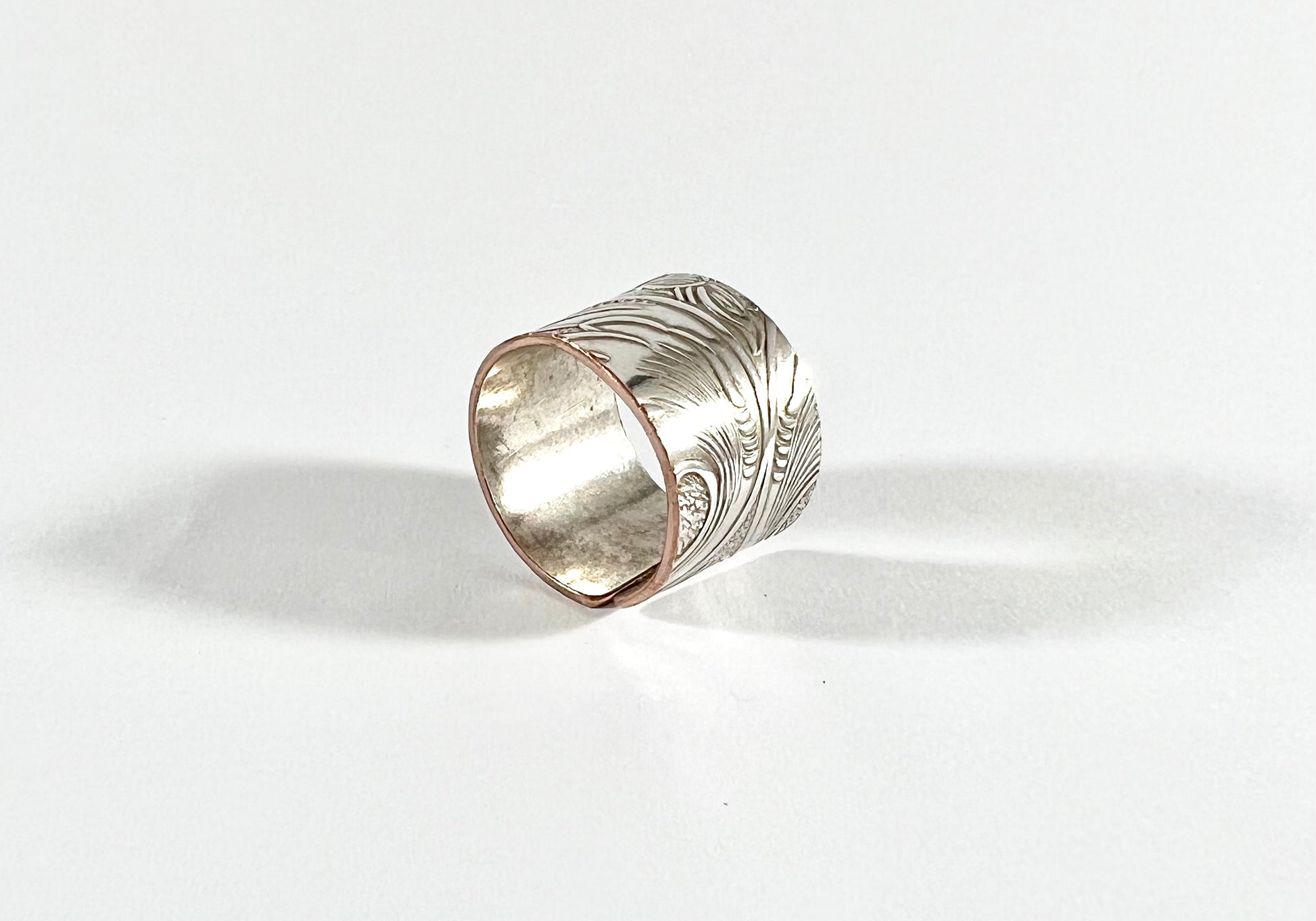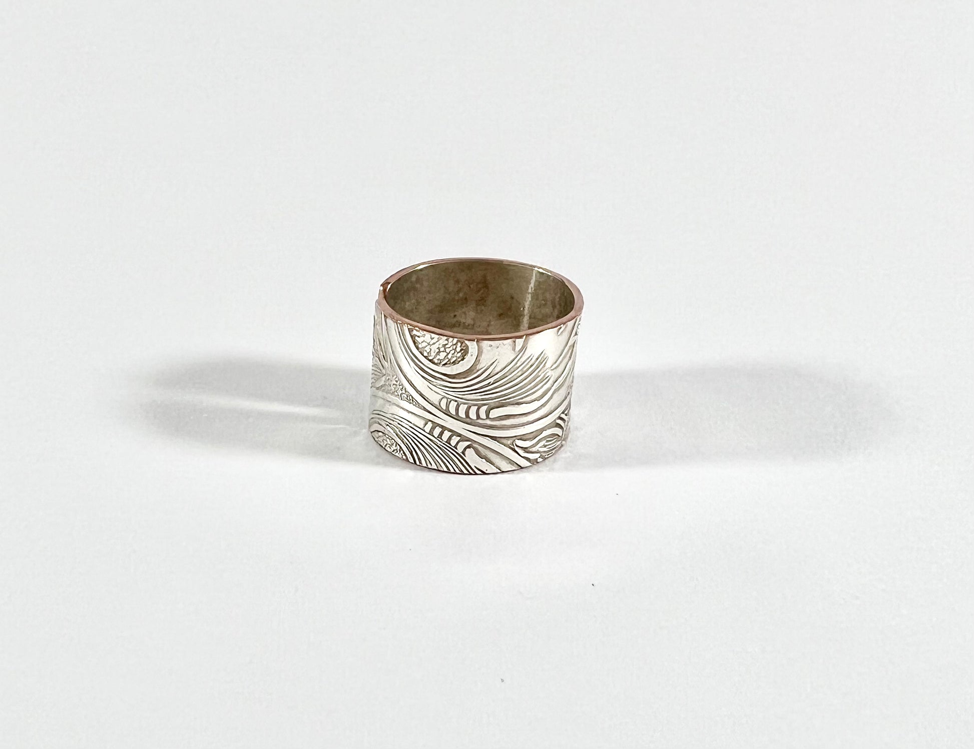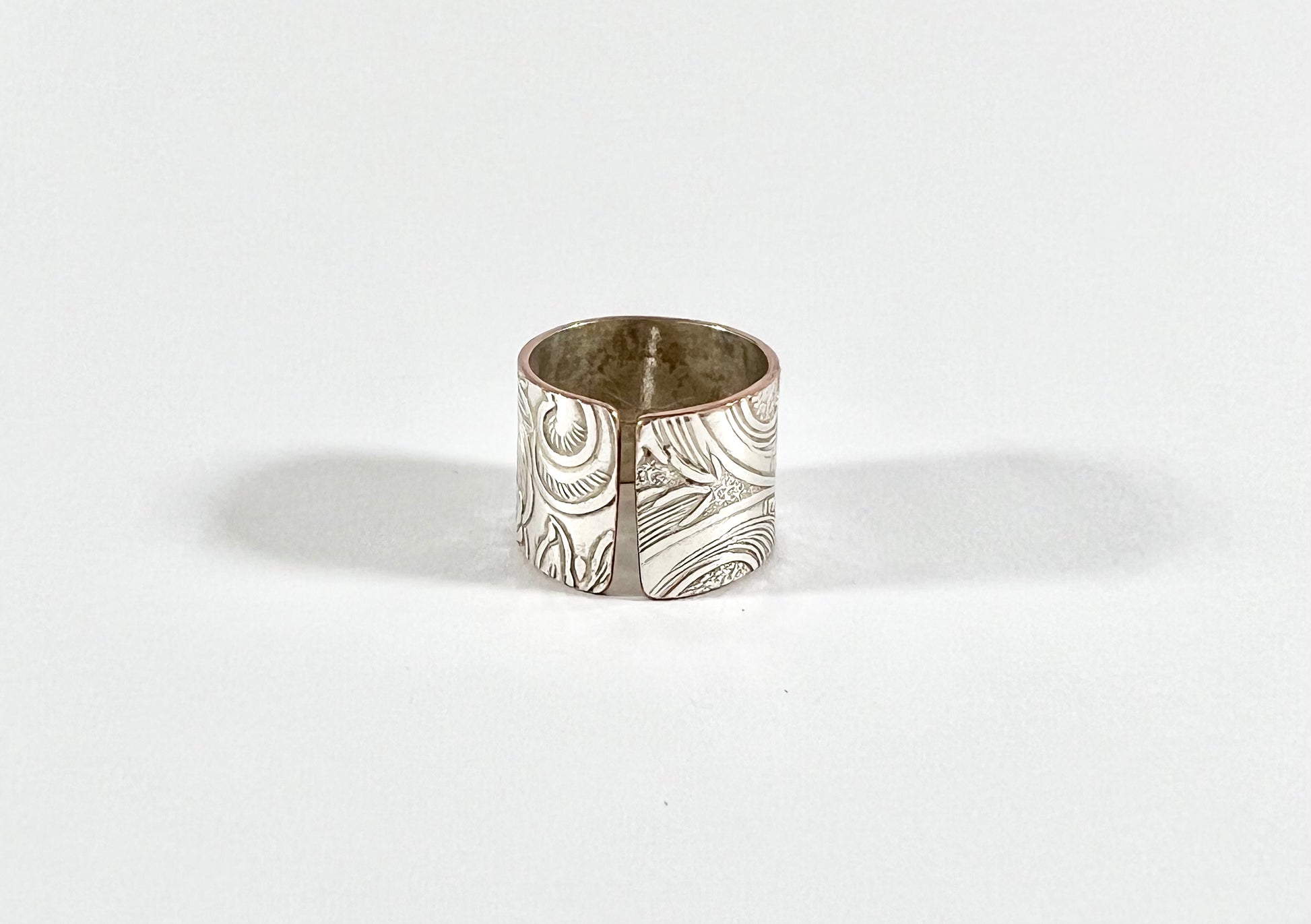This lovely ring is made from an ornately decorated vintage silver serving platter, out of which I hand cut the ring, filed and sanded it down to a perfect finish and hammered it around a ring mandrel to make this one of a kind adjustable wrap ring.