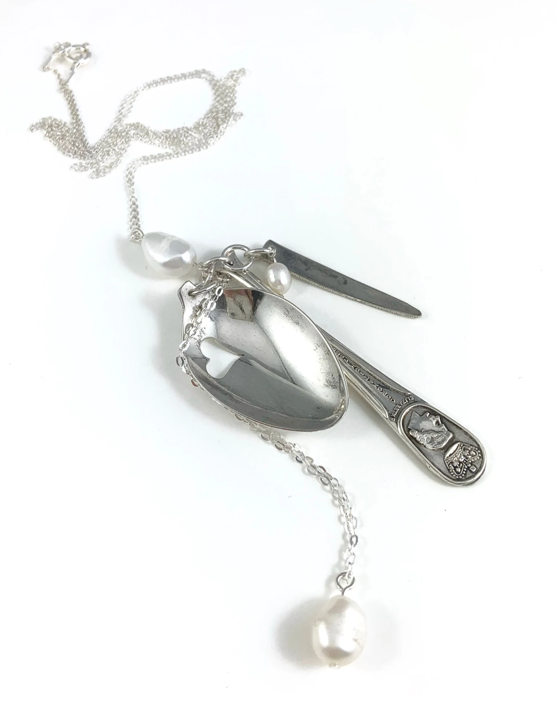 This necklace is made from the end of a vintage souvenir teaspoon which commemorated the visit of Queen Elizabeth II to Canada in 1939. I hand cut her image off the end of the spoon, filed and sanded it to a perfect finish and then polished it to a nice shine. The whole charm sits on a sterling silver chain.