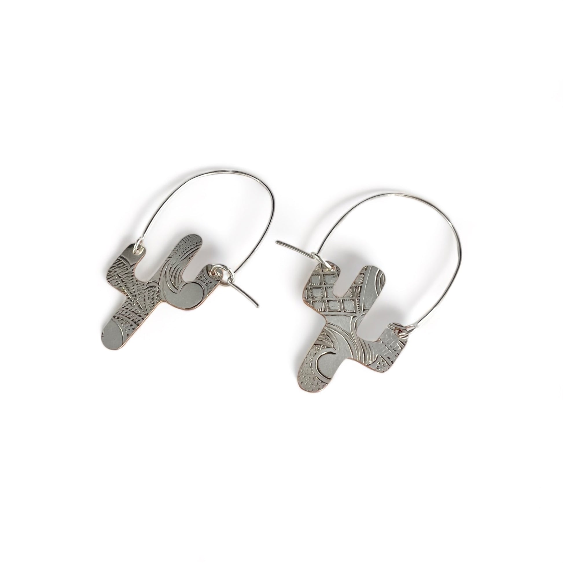 Silver Cactus Hoop Earrings