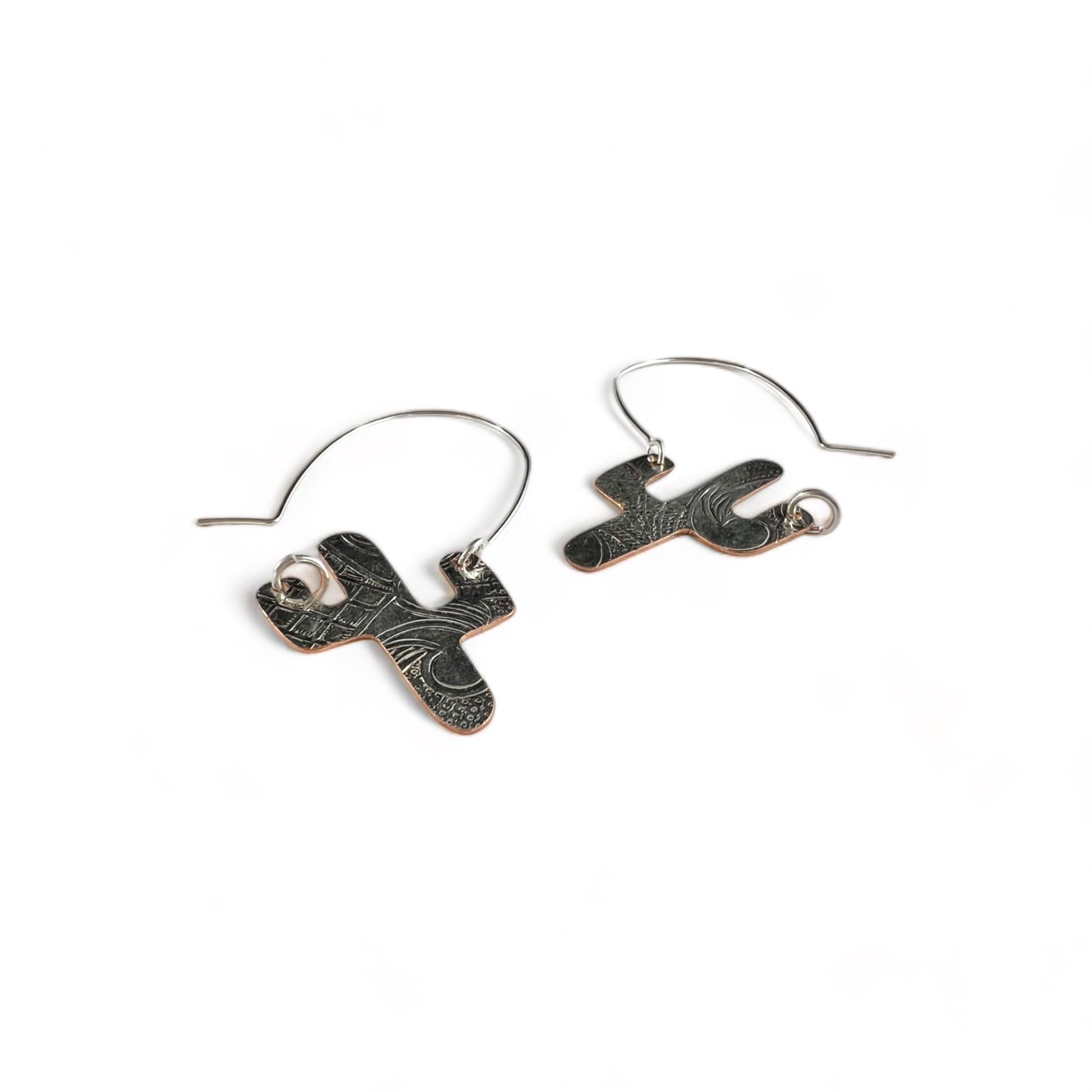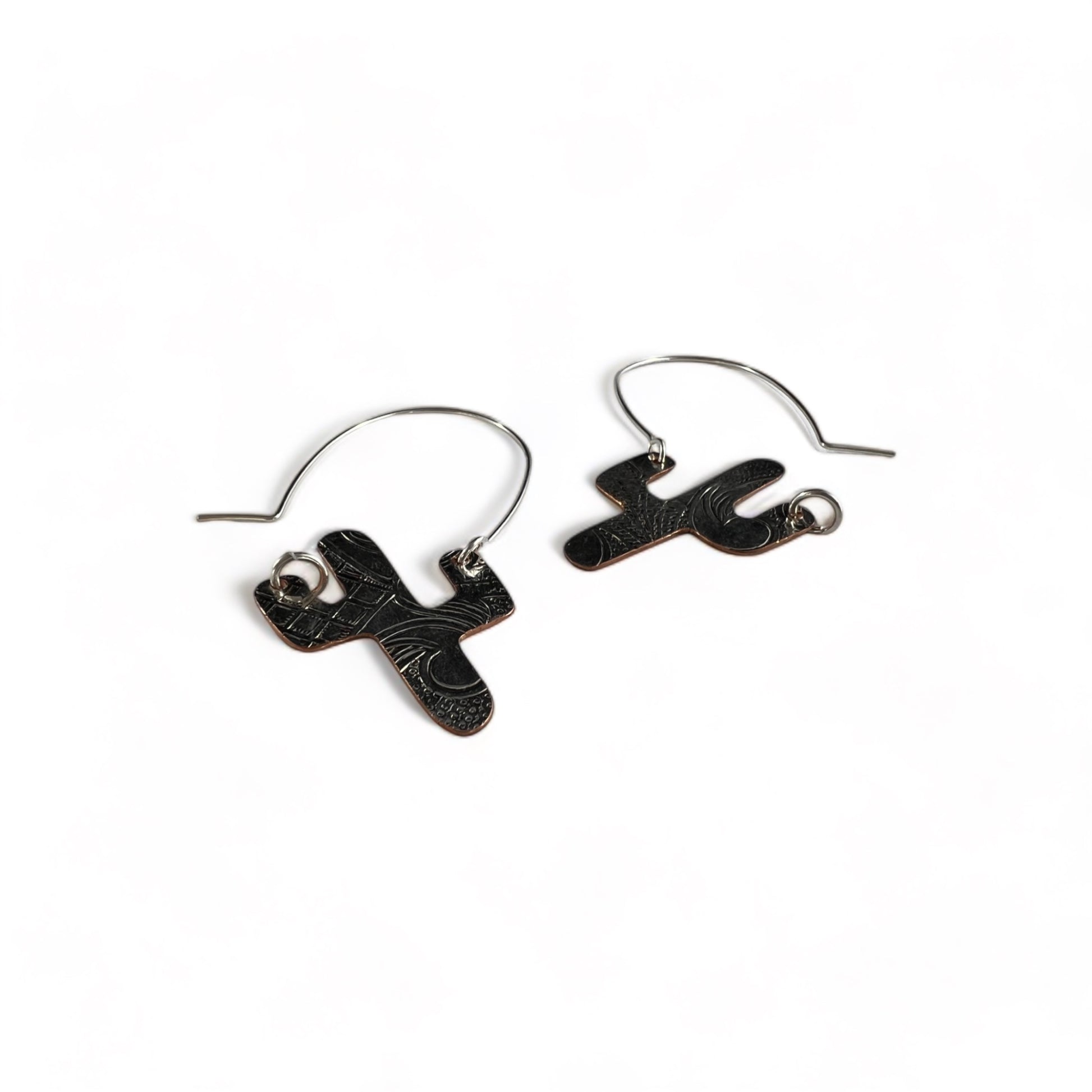 Each side of the cactus charm is drilled and I attached a sterling silver ear wire to connect the two sides. One side is hooked and unloops from the other side for you to insert the ear wire, and then clip it back up.