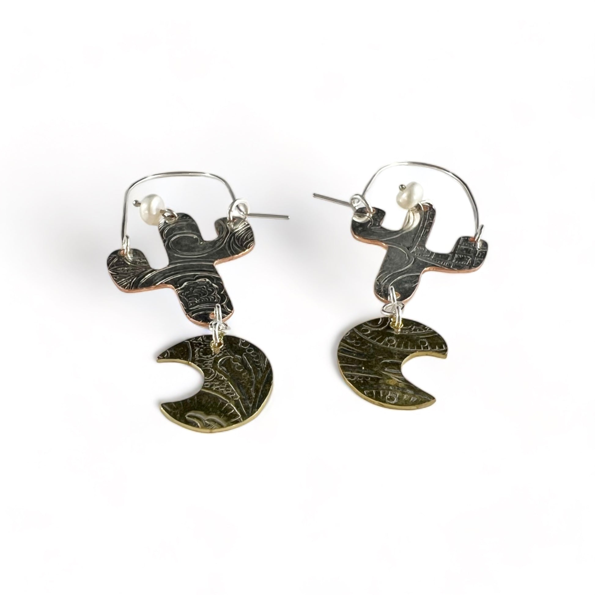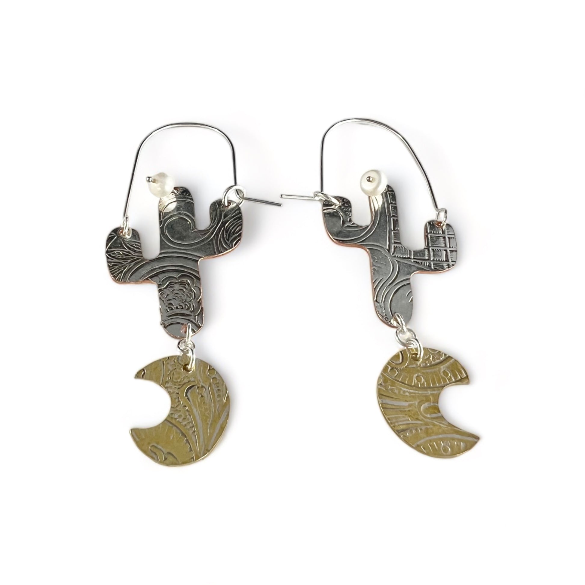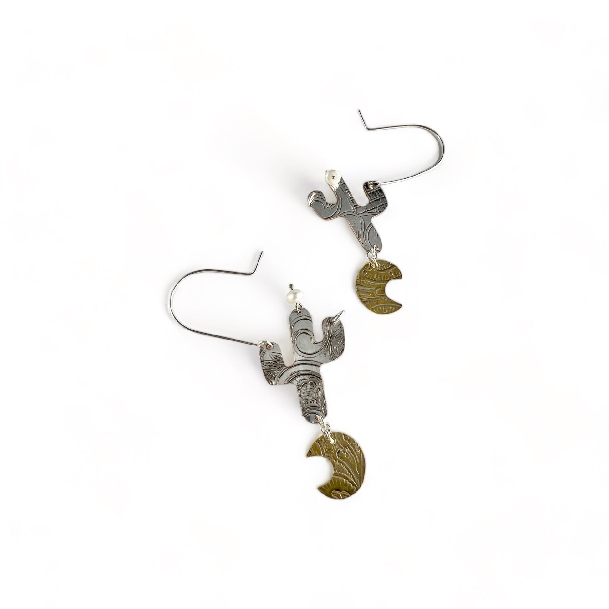 Each side of the cactus charm is drilled and I attached a sterling silver ear wire to connect the two sides. One side is hooked and unloops from the other side for you to insert the ear wire, and then clip it back up.
