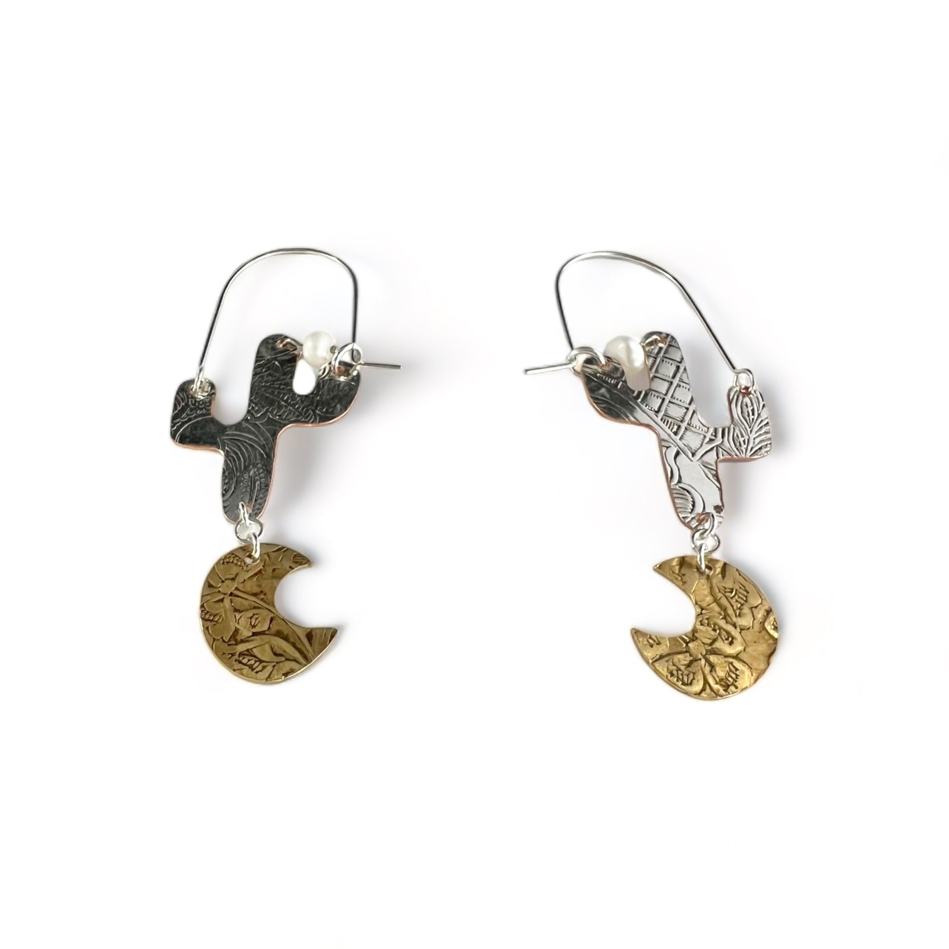 Each side of the cactus charm is drilled and I attached a sterling silver ear wire to connect the two sides. One side is hooked and unloops from the other side for you to insert the ear wire, and then clip it back up.
