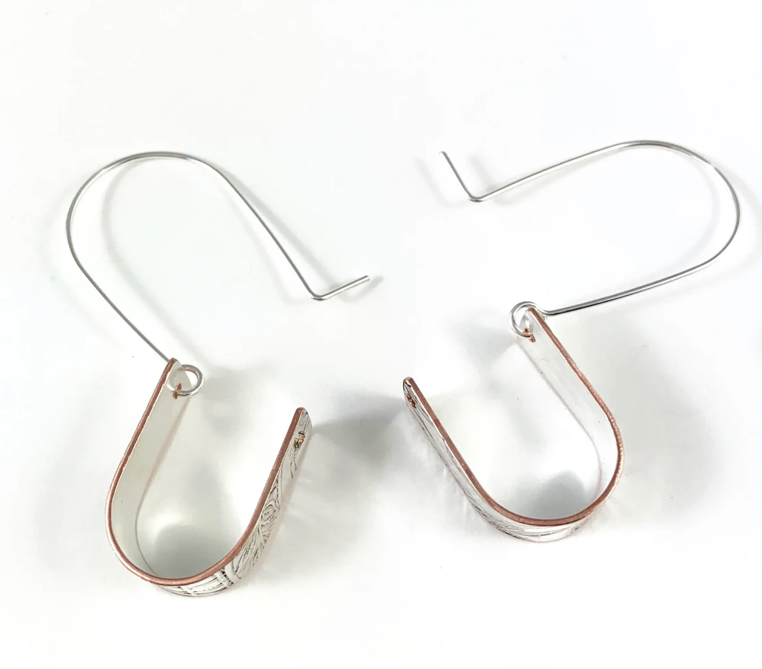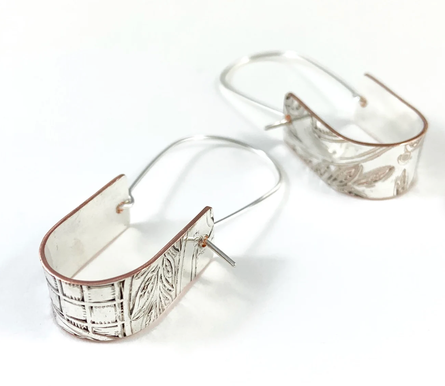 I used the plate to create these earrings by cutting out bands, then hammering and drilling and attaching a sterling silver ear wire.