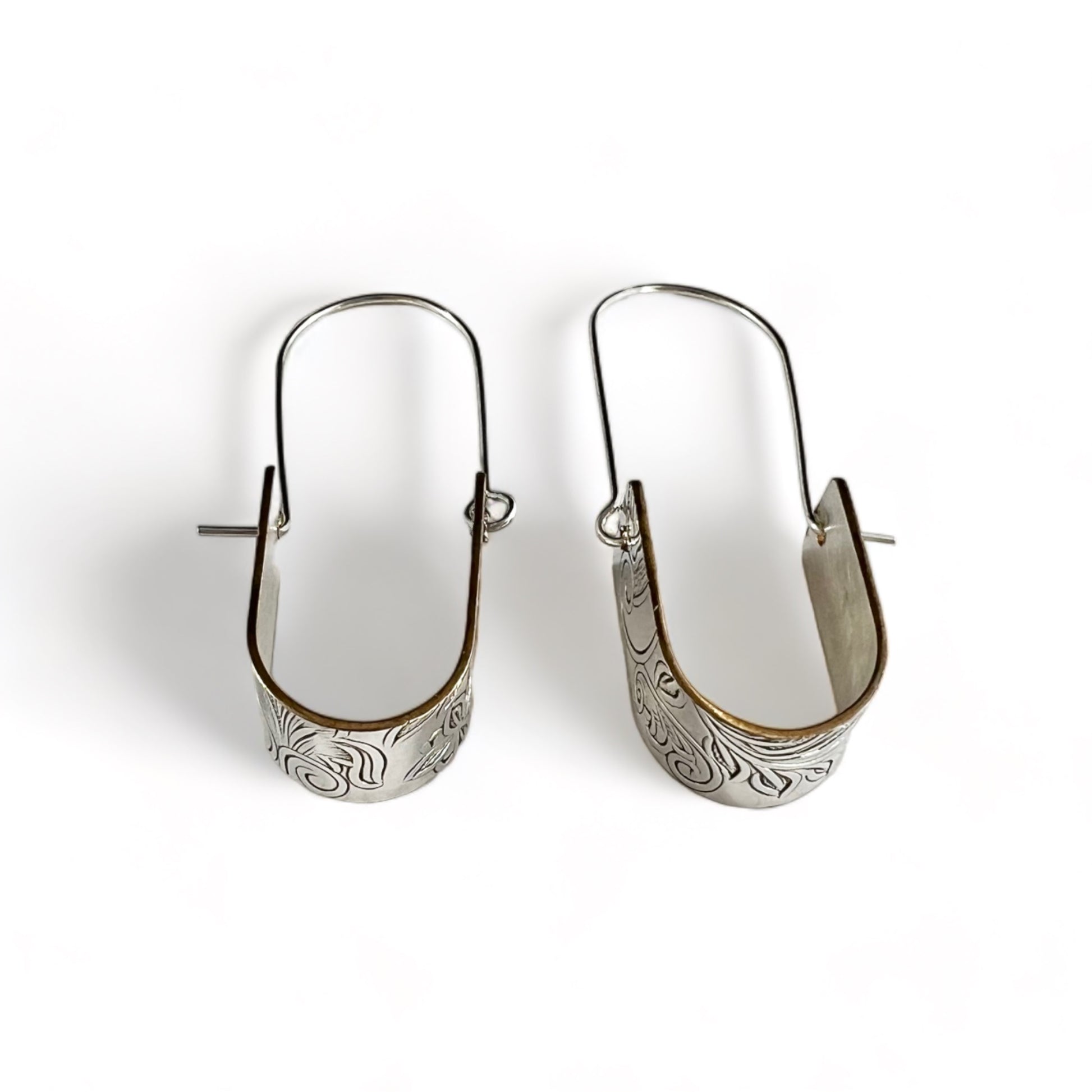 I used the plate to create these earrings by cutting out bands, then hammering and drilling and attaching a sterling silver ear wire.