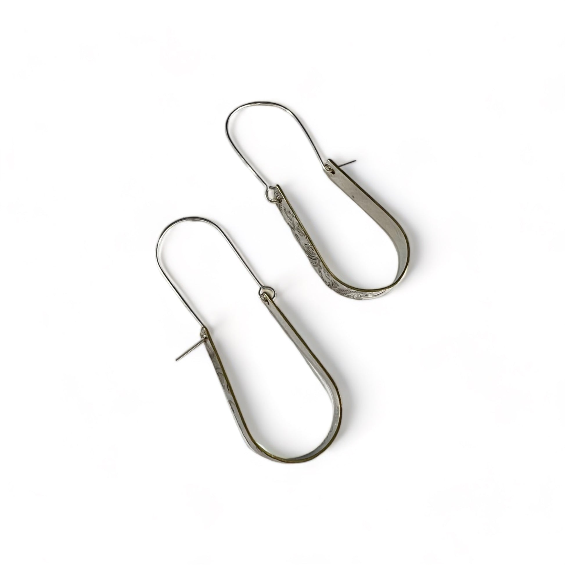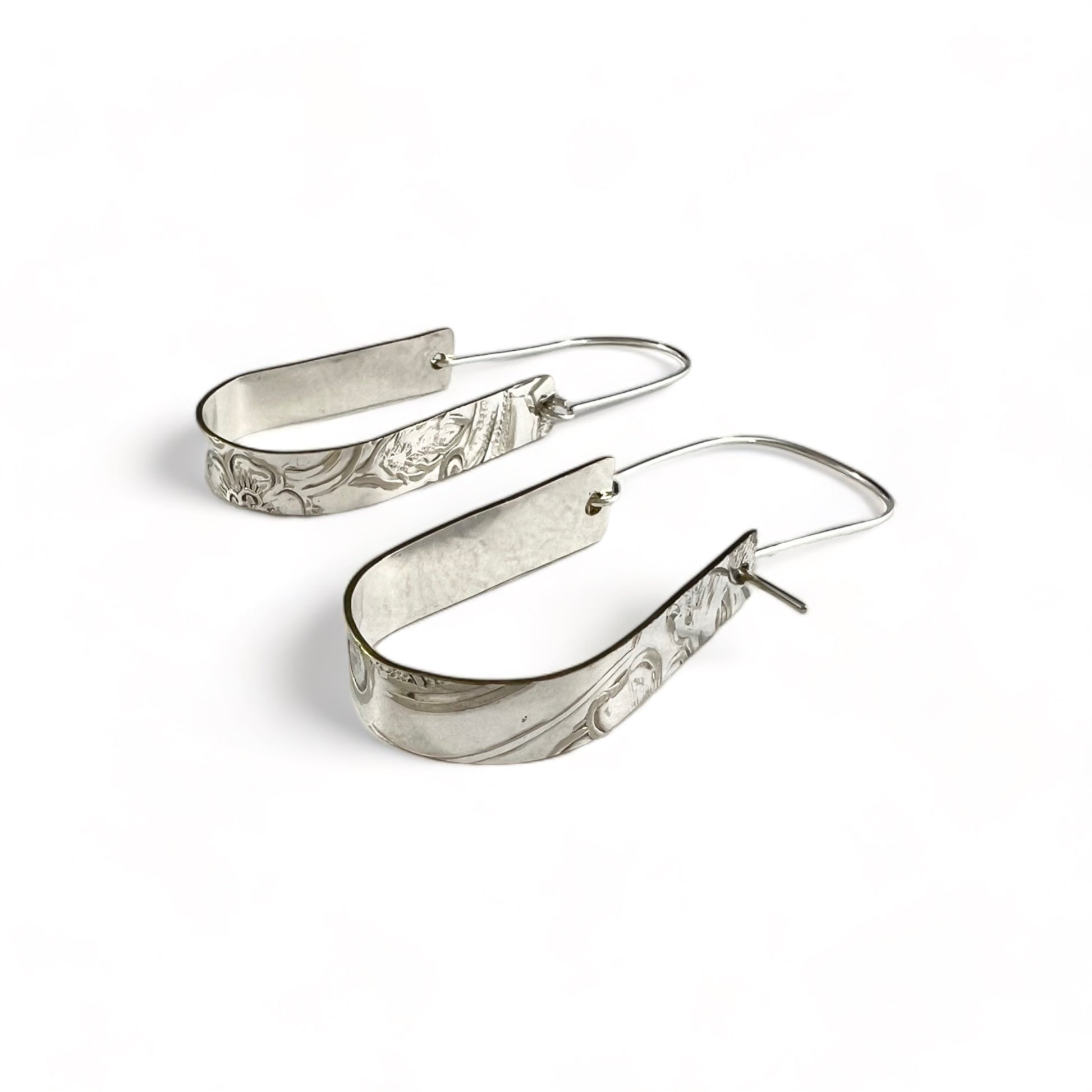 I used the plate to create these earrings by cutting out bands, then hammering and drilling and attaching a sterling silver ear wire.