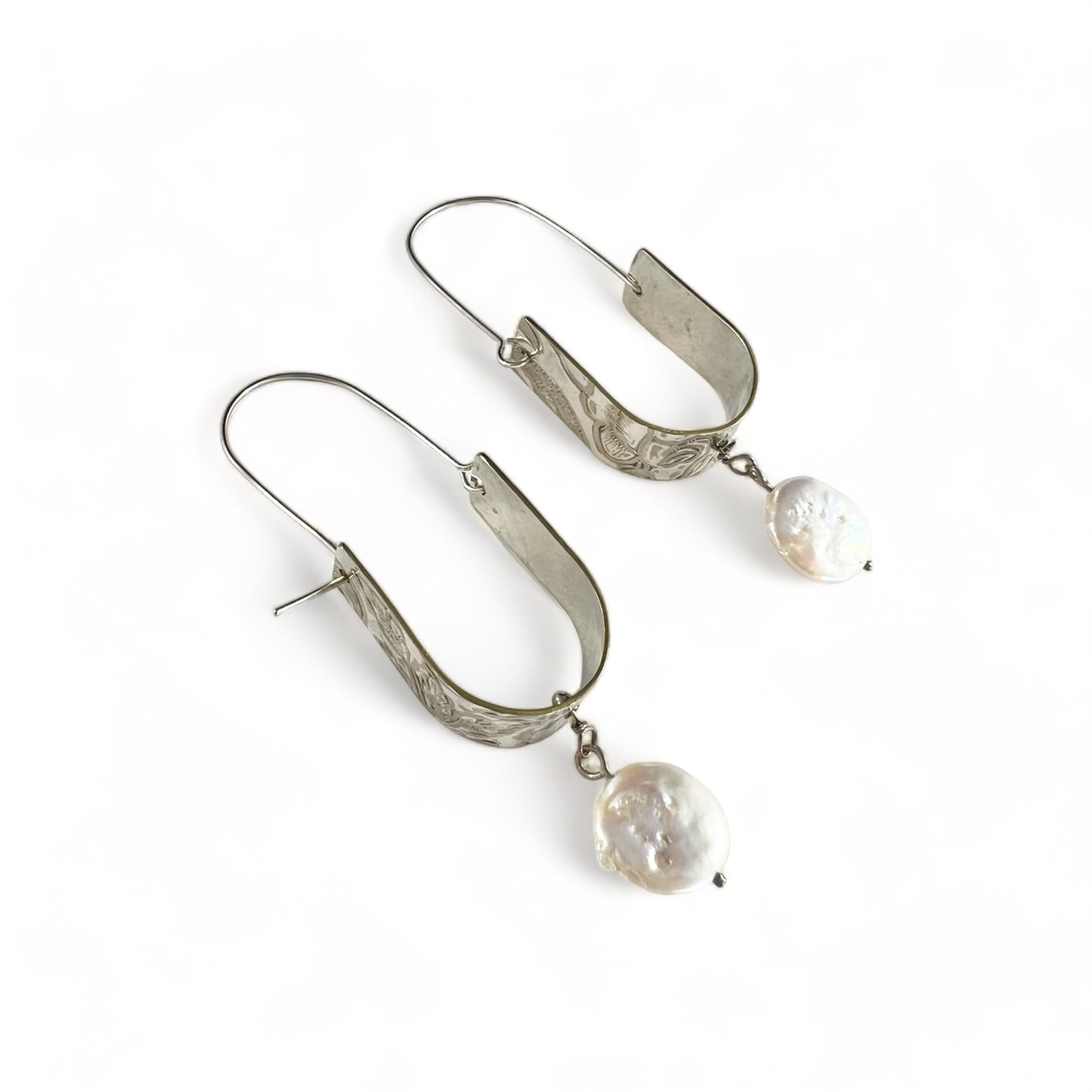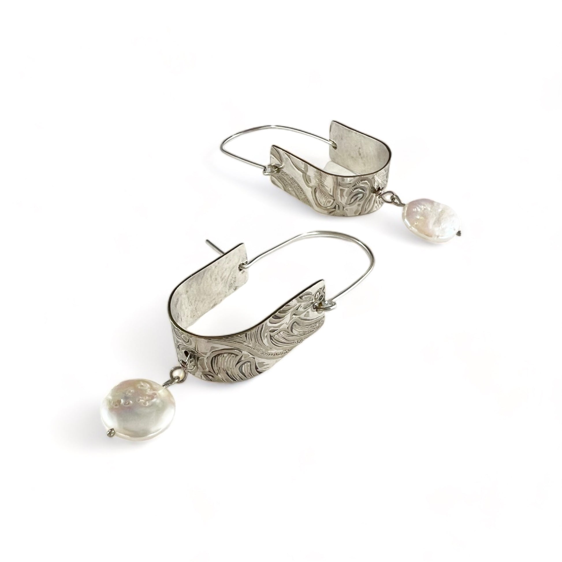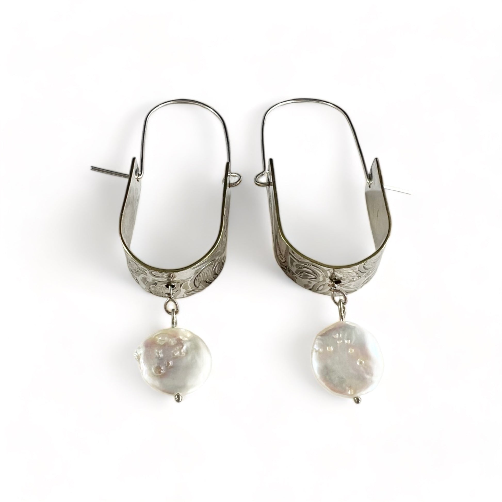 Silver Hoop Earrings with Pearls