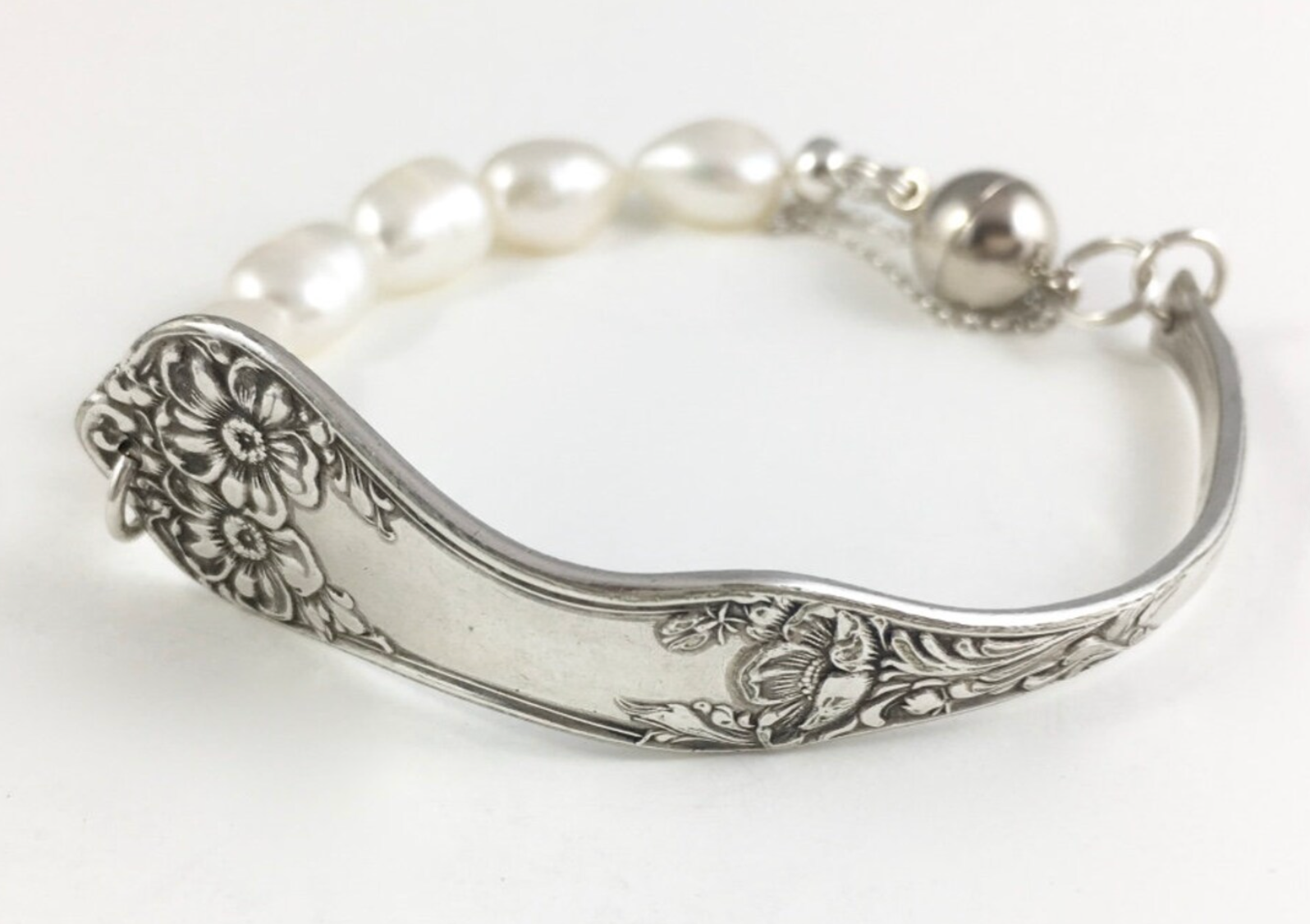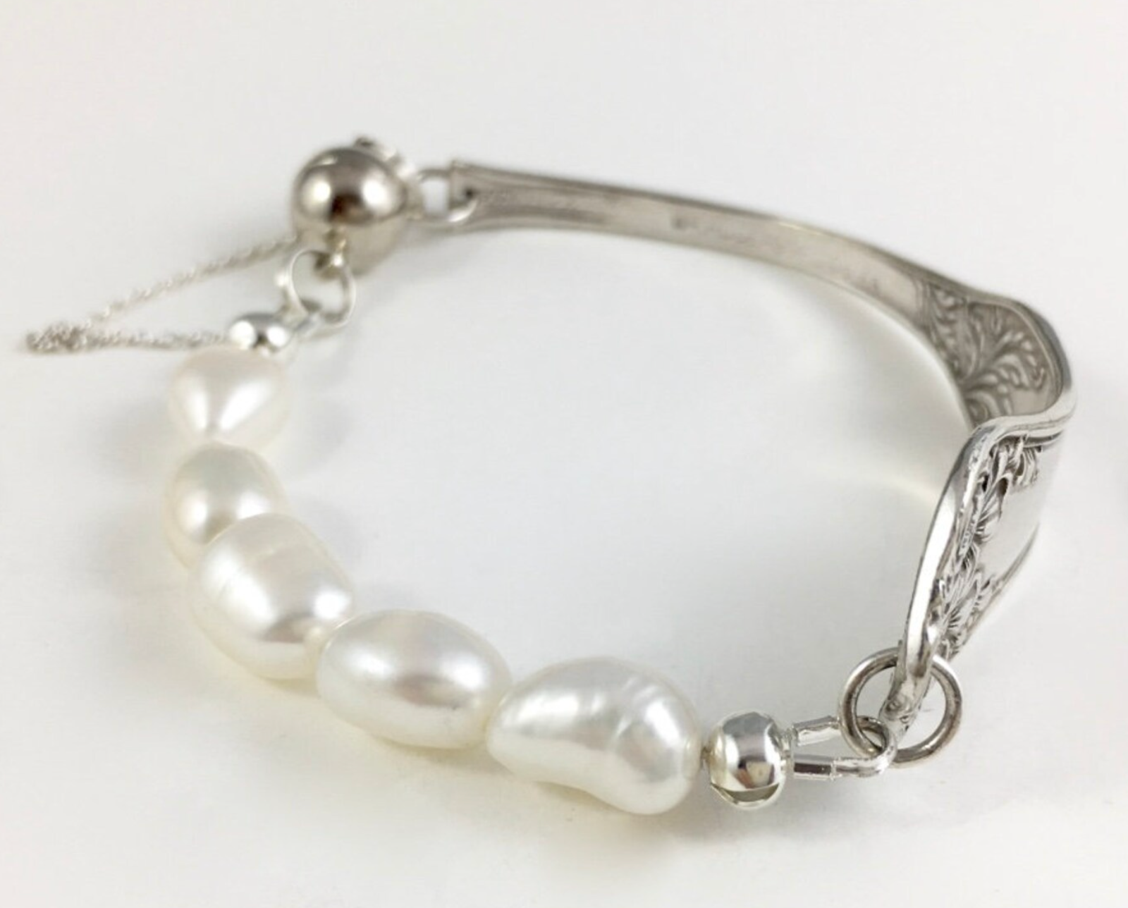 Silver Spoon Bracelet with Pearls