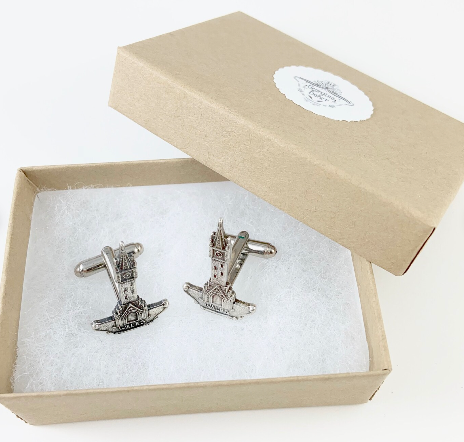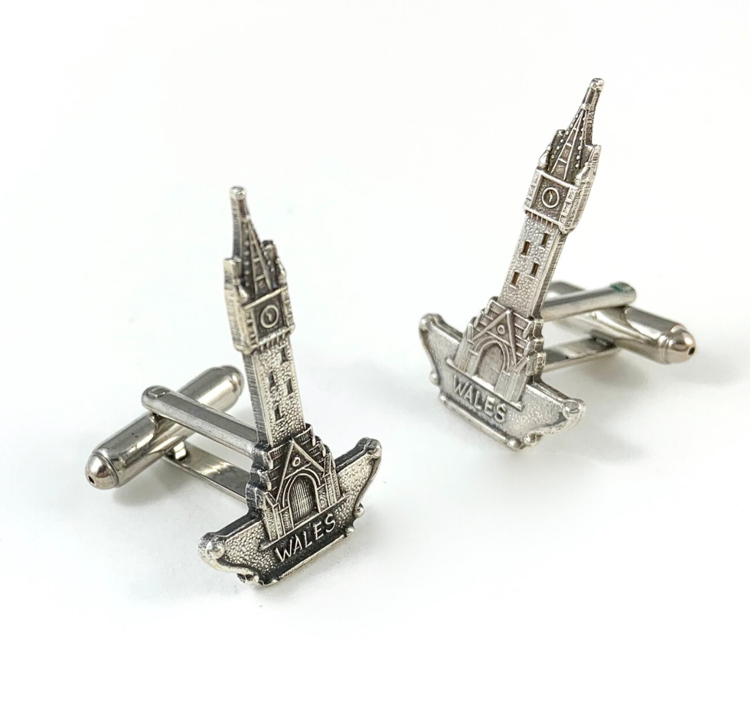 These cufflinks are made from the ends of two vintage souvenir spoons and will definitely be a conversation starter. The original spoons were from Wales and they show a very ornate picture of a church. They are extremely detailed and beautiful with a great vintage patina. I have soldered cufflink backings onto them.