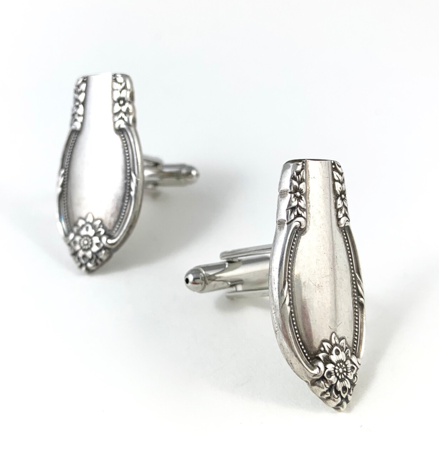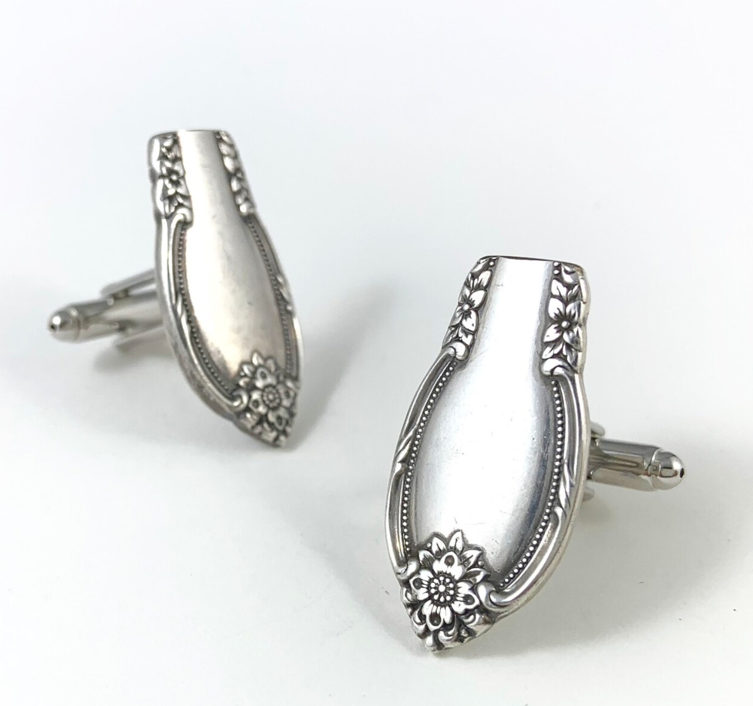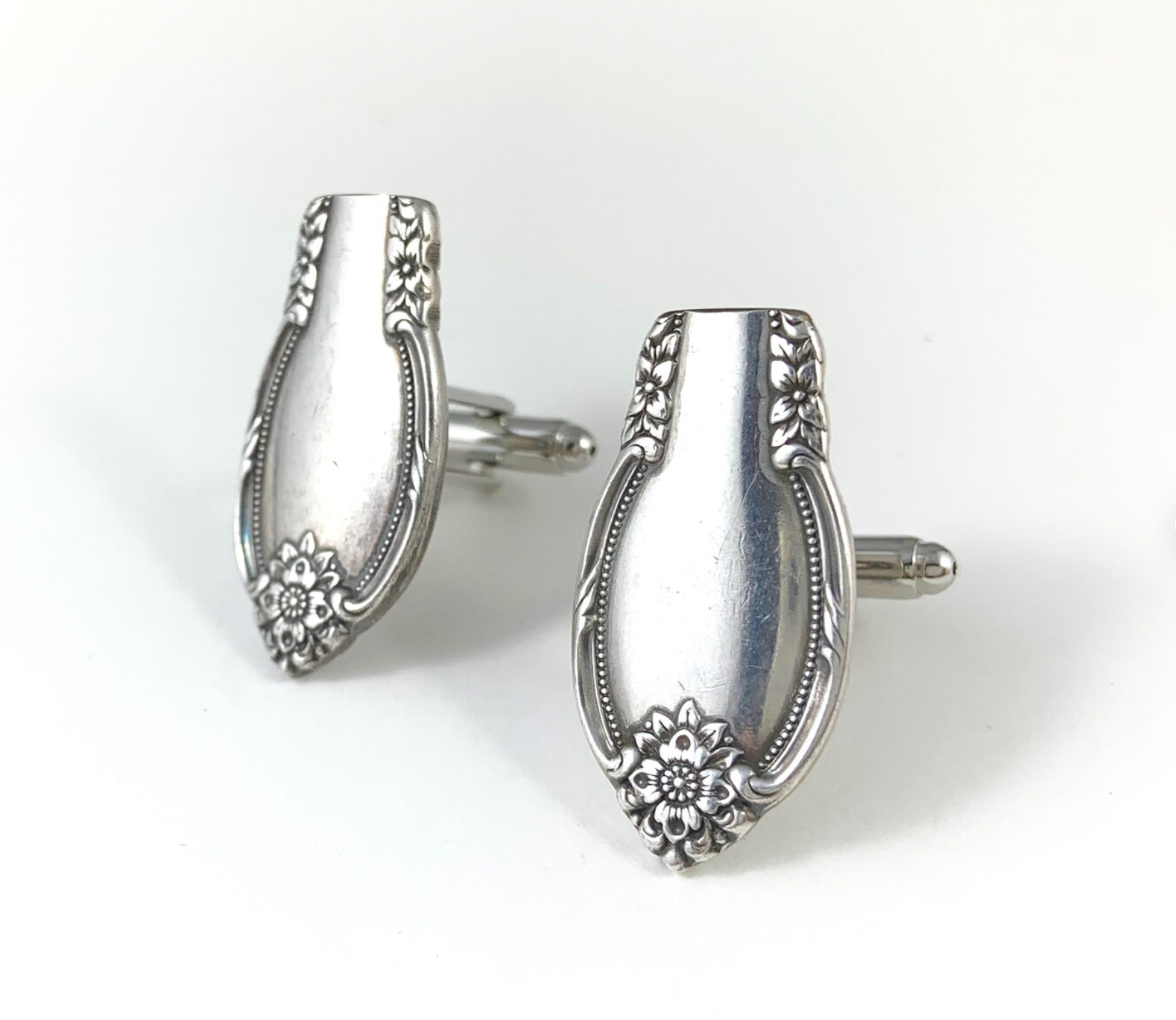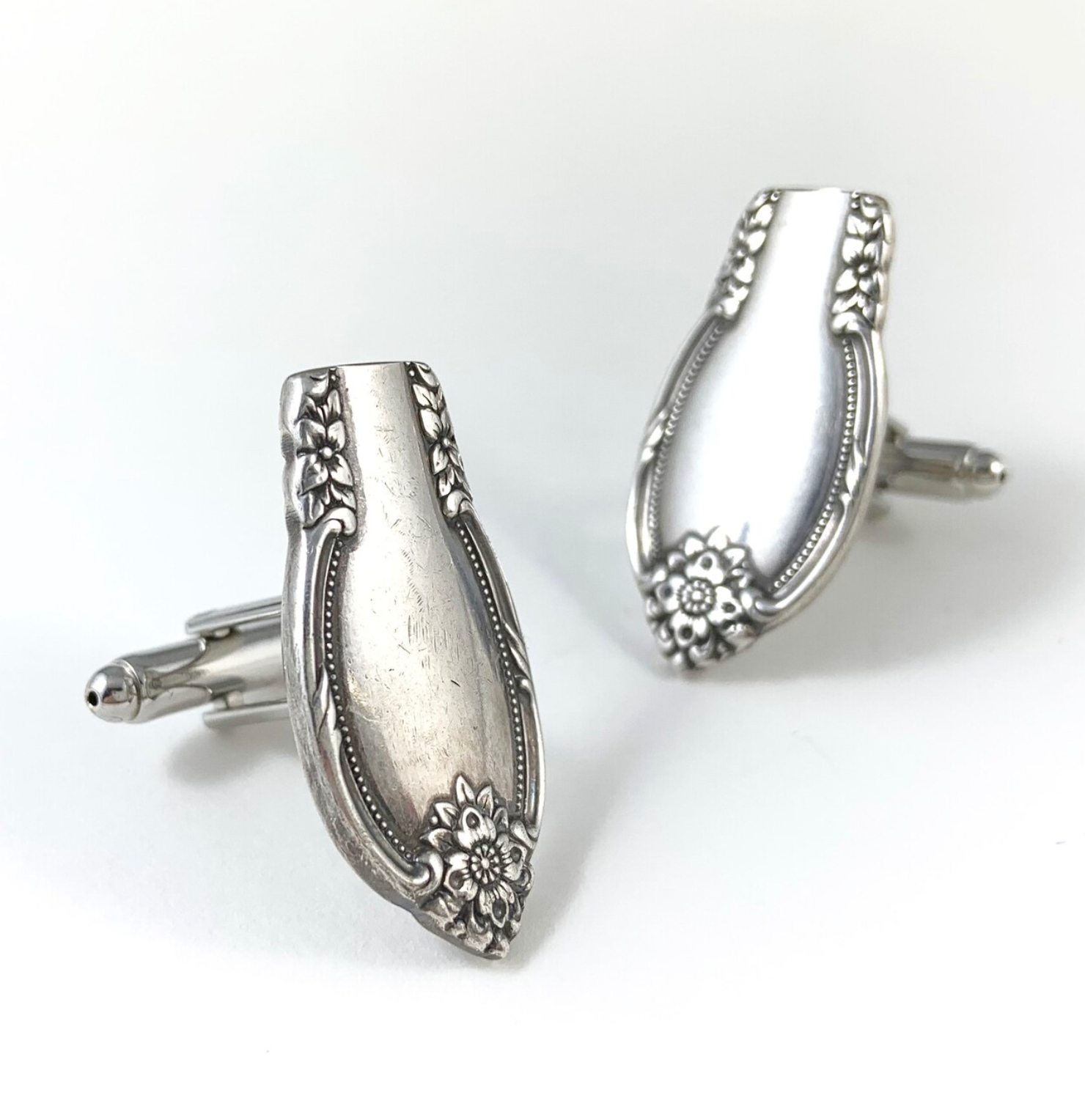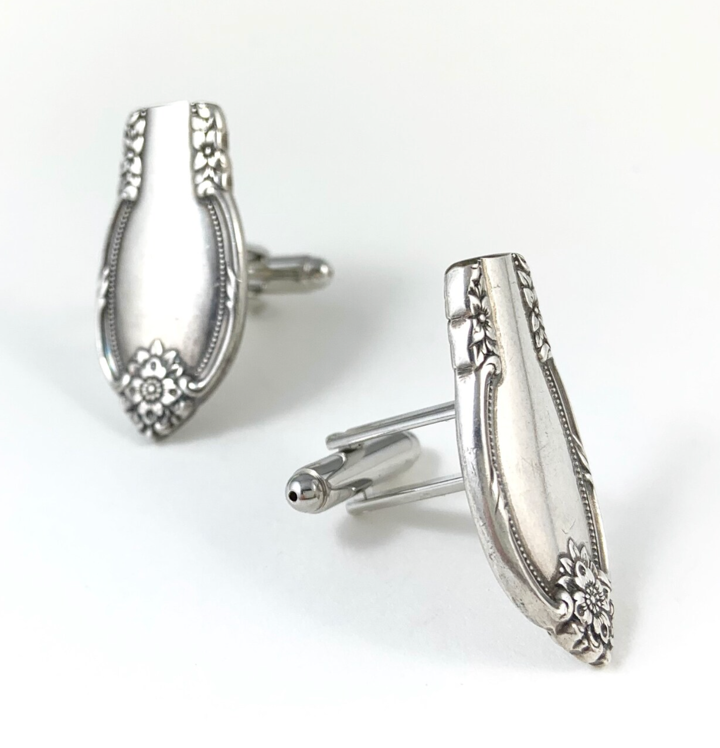 These cuff links are made out of the ends of two matching silver teaspoons.